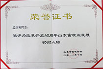 孟庆利被评为改革开放40周年山东畜牧业发展功勋人物